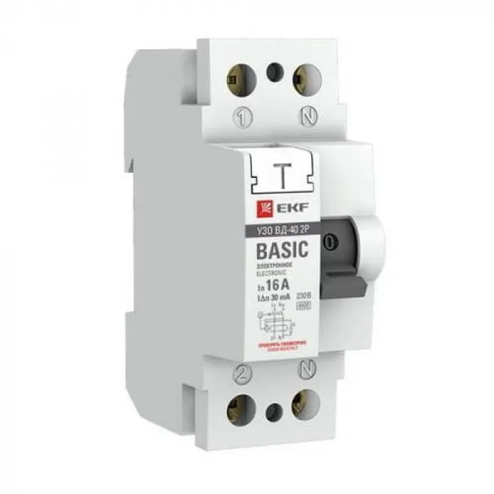 УЗО EKF Basic ВД-40 2P 63А/300мА (электронное), elcb-2-63-300e-sim, Нижний Новгород