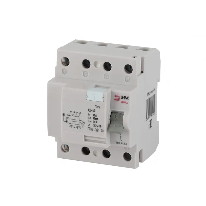 УЗО ЭРА SIMPLE ВД-40 4P 63А/300мА электронное Б0039274 - это электронное устройство защиты от утечки тока и перегрузок в электрических сетях. УЗО (устройство защитного отключения) предназначено для обеспечения безопасности электросетей и оборудования, предотвращая возможные аварийные ситуации. Данное УЗО имеет характеристики: 4 полюса, номинальный ток 63А, чувствительность 300мА. Продукт отличается надежностью, простотой использования и соответствием всем стандартам безопасности.