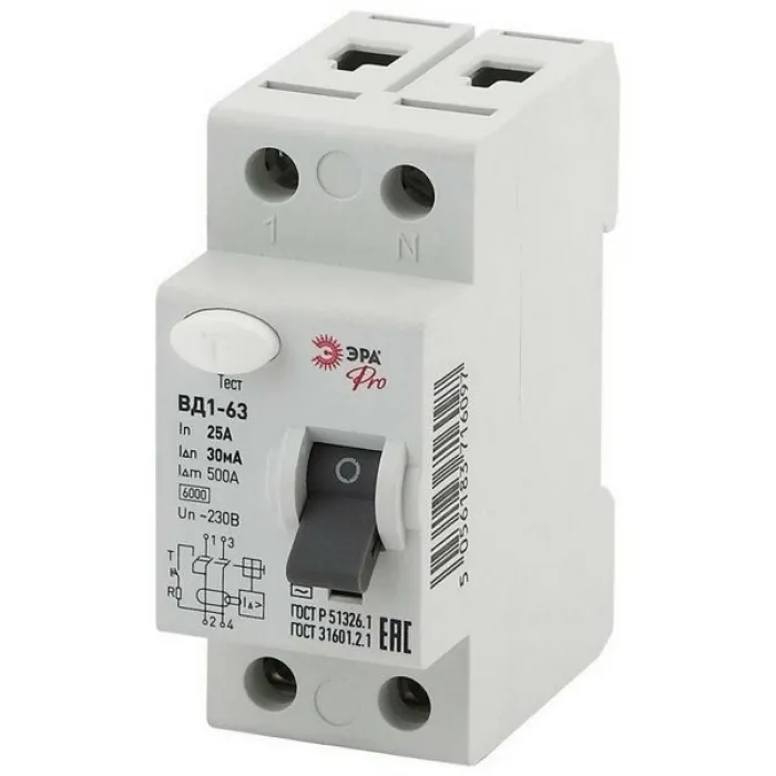 УЗО ЭРА ВД1-63 электромеханическое 1Р+N 63А 100мА тип АС, Б0031878 - надежное электромеханическое устройство защиты от токов утечки и перегрузок. Данная модель УЗО представляет собой автоматическое выключающее устройство, которое обеспечивает безопасность электрических цепей и предотвращает возможные повреждения оборудования и возгорания.