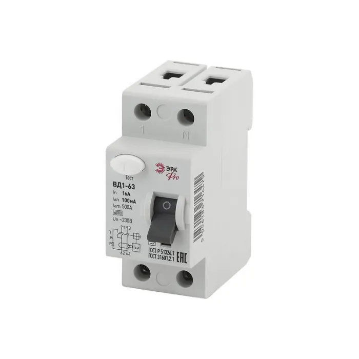 УЗО ЭРА ВД1-63 электромеханическое 1Р+N 16А 100мА тип АС, Б0031911, Нижний Новгород