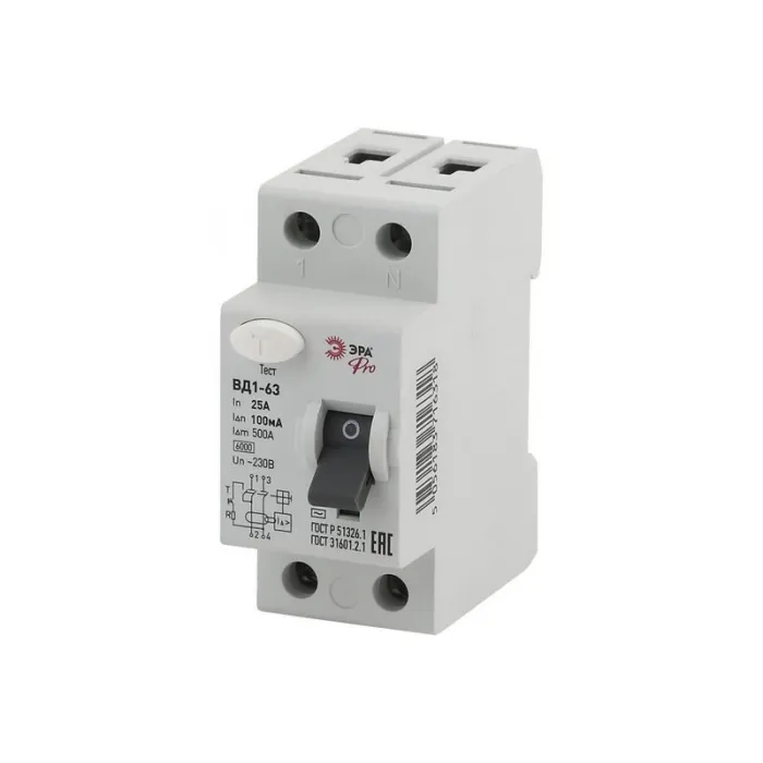 УЗО ЭРА ВД1-63 электромеханическое 1Р+N 25А 100мА тип АС, Б0031895, Нижний Новгород