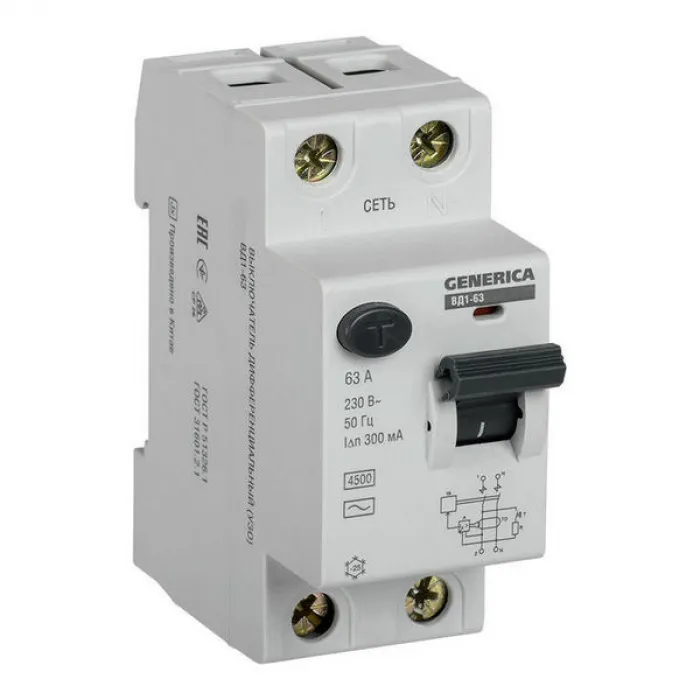 УЗО IEK GENERICA 2P 63А, 300 мА ( AC ), MDV15-2-063-300, Нижний Новгород