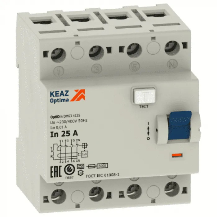 УЗО КЭАЗ OptiDin DМ63 4P 63А 6 кА, 100 мА ( AC ), 254222, Нижний Новгород