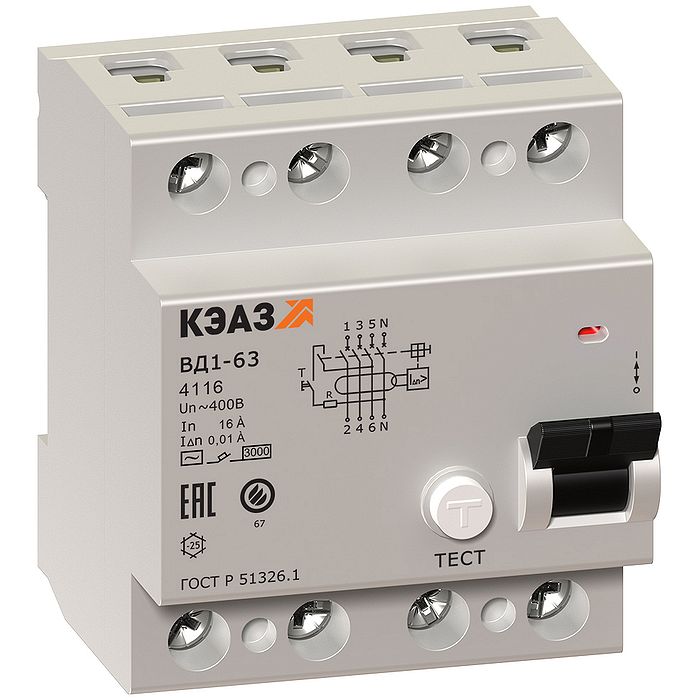 УЗО КЭАЗ ВД1-63 4P 32А 4.5 кА, 100 мА (AC), 222724, Нижний Новгород