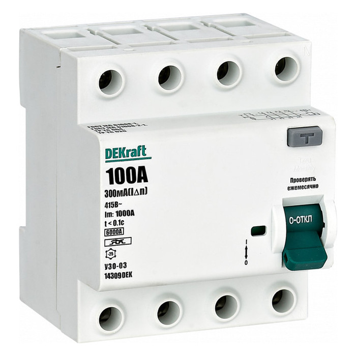 УЗО DEKraft УЗО-03 4P 100А 6 кА, 300 мА (A), 14309DEK, Нижний Новгород
